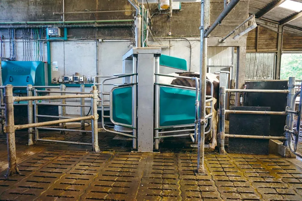 Ce modèle de robot, largement inspiré des outils de traite GEA, dispose d’une large porte d’entrée latérale et d’une auge avant indexable en fonction du gabarit de la vache. « Ce robot est compact et ergonomique autant pour la vache que pour nous. Nous avons effectivement accès, à hauteur d’homme, à la mamelle par l’arrière car le robot est bordé d’une fosse. Cela nous évite une zone de contention. Le branchement manuel est aussi possible si besoin » ajoutent les éleveurs. De plus, chaque trayon est traité individuellement du lavage au trempage sans risque de contamination croisée. Un analyseur cellulaire permet d’identifier l’état sanitaire d’une mamelle, quartier par quartier, en temps réel, en continu et sans consommable. Le lait est dévié en cas de contamination. Le commercial précise : « la connotation “nouvelle génération” est liée à la conception du robot qui permet un branchement très rapide sans aucun paramétrage de l’éleveur, un véritable trempage, une faible consommation d’énergie et d’eau et un accès facile à la mamelle pour l’éleveur. »