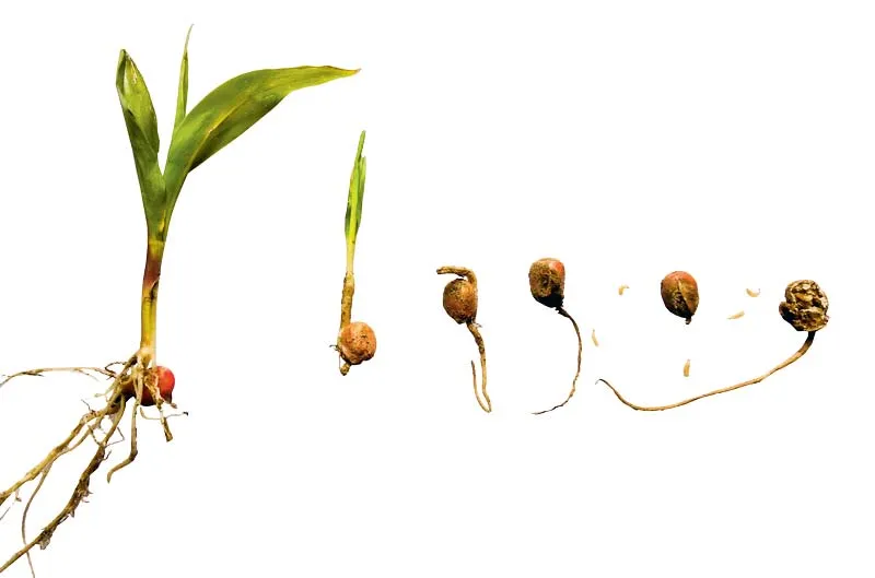 Cette mouche de semis a attaqué de façon ponctuelle, hormis dans les situations où le maïs avait été protégé contre les taupins : les spécialités comme Karaté 0.4 GR, Belem ou Tricka Expert ont donné de bons résultats de protections contre ces larves de mouche. « Elles sont présentes dans le sol, on ne les a pas vues venir », témoigne Michel Moquet, tant les attaques ont été brusques.