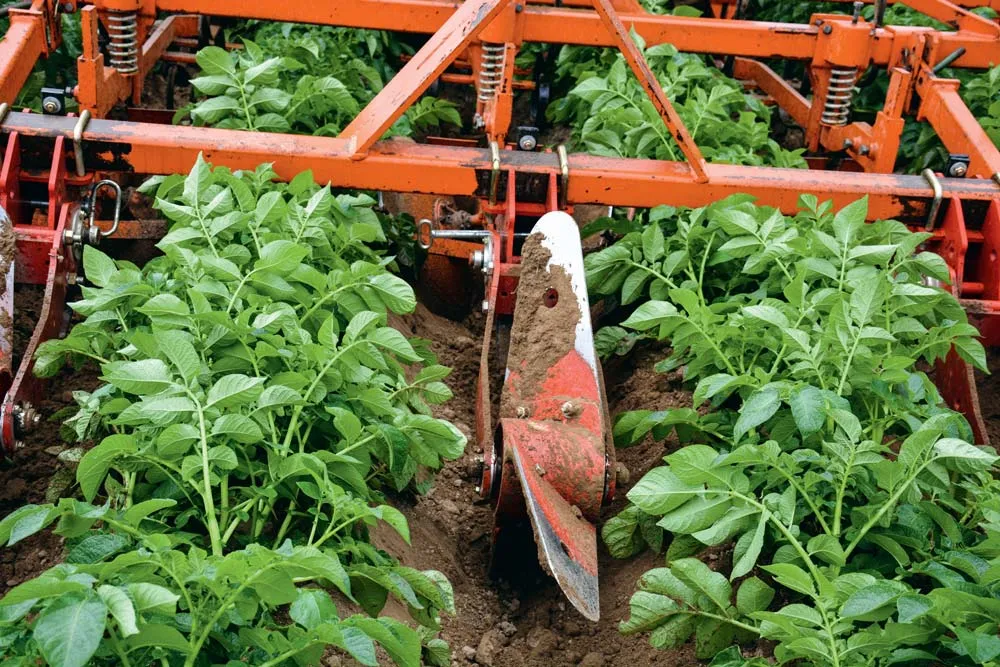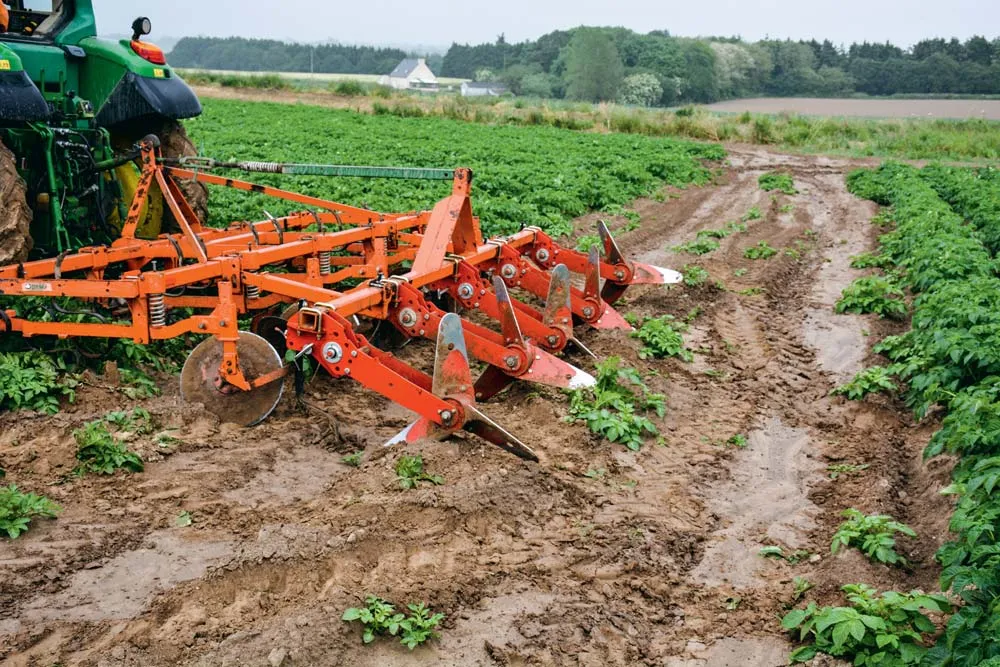Créer des buttes dans le rang de pommes de terre permet de limiter l’érosion, de retenir l’eau près des plants, mais aussi de gagner en calibre et en homogénéité.