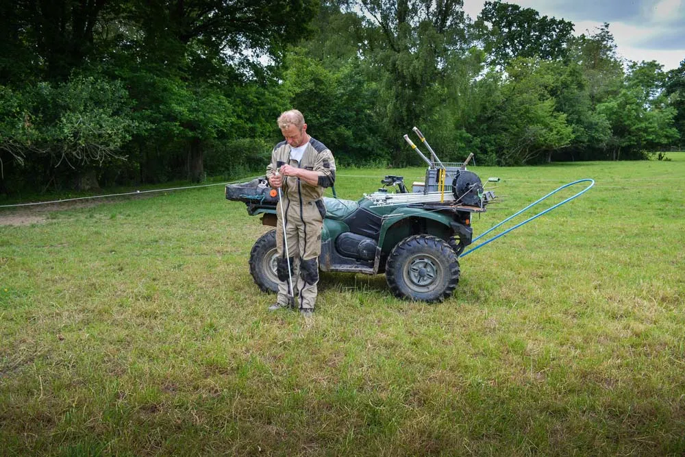 Le quad présent sur l’élevage de l’EARL Breizlait, à Mérillac (22), rend la gestion des troupeaux au pâturage beaucoup plus facile. Les clôtures peuvent être posées à une vitesse de 5 km/h.