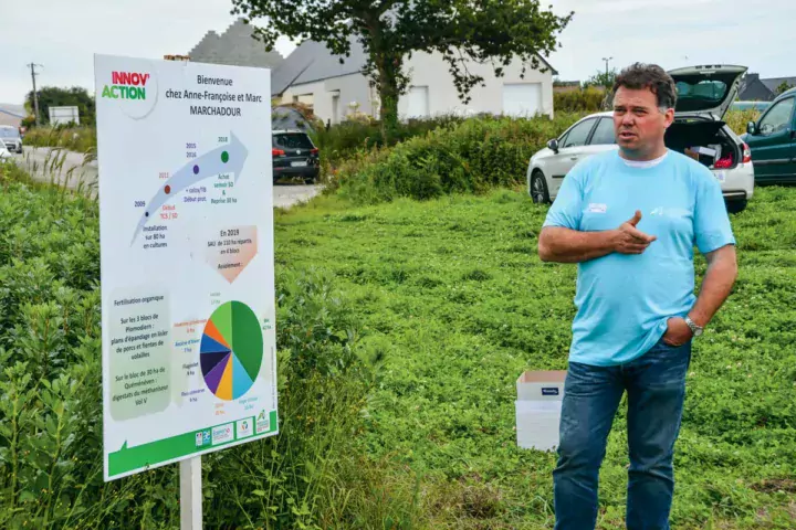 La légumineuse associée à la phacélie est aussi appréciée pour son effet sur la structure du sol et pour sa facilité de destruction. Le couvert est détruit le jour du semis de la céréale. « La féverole est facile à réussir, à semer, à garder entre 2 cultures et à broyer », note Marc Marchadour. Quant à la gestion des ravageurs, il observe des pucerons sur les couverts, mais « il faut être patient, les coccinelles font leur travail ». La biodiversité est aussi plus importante dans des parcelles contenant plusieurs espèces végétales ; l’agriculteur finistérien n’utilise plus d’insecticide sur ses cultures.