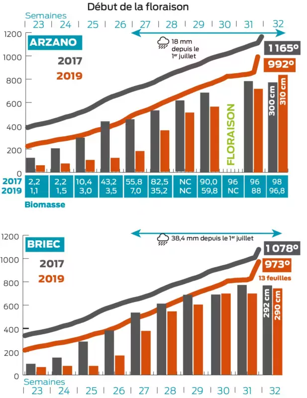 Les températures caniculaires de fin juillet ont accentué le stress hydrique des maïs, dans la phase la plus sensible, autour de la floraison.