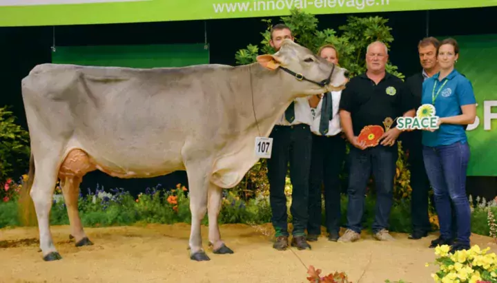 Le concours de la race brune qui s’est déroulé lors du Space a réuni 12 vaches venues du Grand Ouest et réparties en 3 sections. Le juge Philippe Deru a désigné LBB Lalice appartenant au Gaec du Bois Brillant à Saint-Sigismond (49) comme Grande championne du concours interrégional. « Aujourd’hui, elle était dans sa robe de noce, elle a survolé la compétition. Le système d’irrigation de sa mamelle est un gage de longévité, elle possède de bonnes attaches, fermes avec beaucoup de force dans les ligaments. »