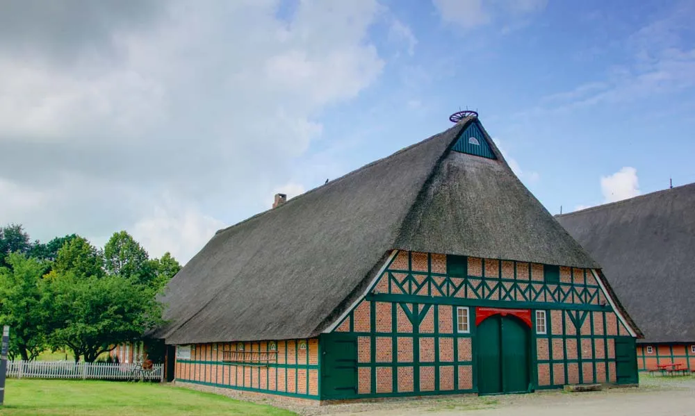 Aujourd’hui, seule la date de construction, fièrement gravée sur la façade de ces bâtiments de ferme édifiés dans les années 1900 à 1930, semble raconter en quatre chiffres l’épopée d’un siècle de prospérité de cette région d’élevage, berceau de la Holstein. Ces granges spacieuses aux accès empierrés de pavés romains impressionnèrent d’ailleurs beaucoup les paysans bretons contraints au service de travail obligatoire dans les fermes allemandes pendant la Seconde Guerre mondiale. À l’époque, leur modernité était sans commune mesure avec les modestes et exiguës constructions des fermes bretonnes.