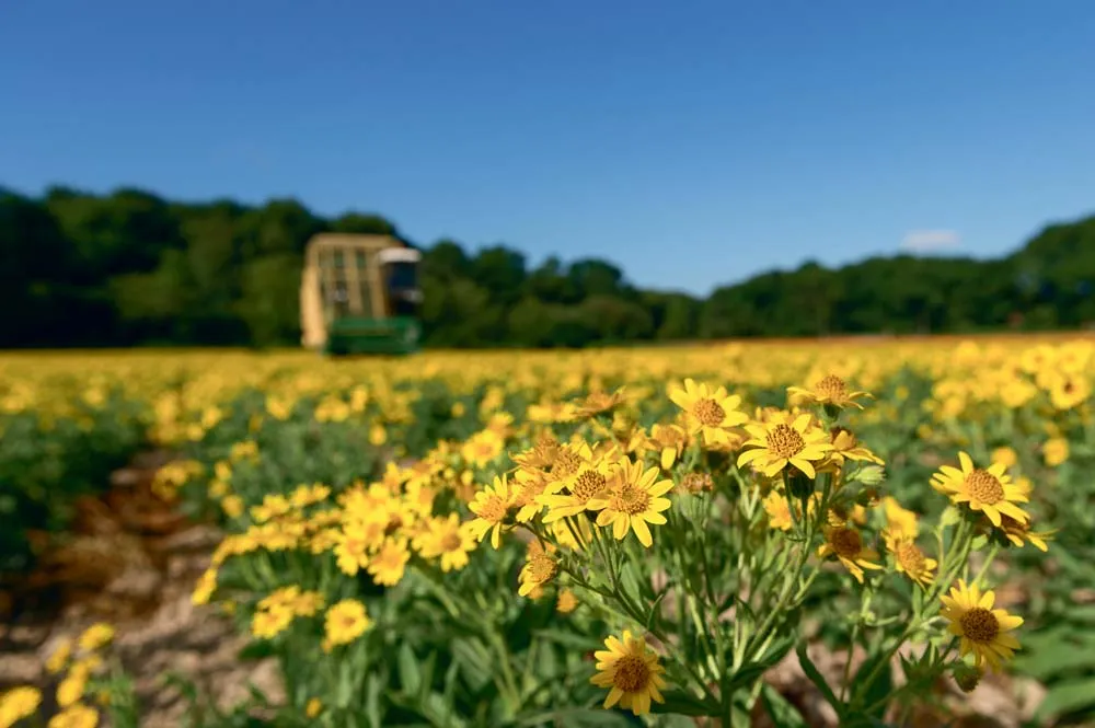 Dès le printemps, les environs du village de La Gacilly se parent de multiples couleurs. Huit plantes, cultivées pour leurs propriétés naturelles, font le succès du groupe Yves Rocher.