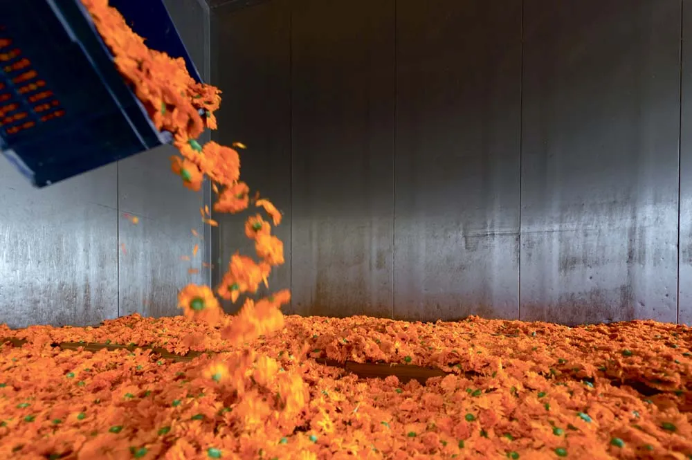 Sous le soleil d’une après-midi d’été, une équipe de saisonniers récolte des soucis et des bleuets à la main, dans un champ appartenant à la célèbre marque de cosmétiques. À quelques mètres, d’autres employés désherbent un champ de camomilles à la binette. La production de crèmes, de shampoings et de parfums ne tolère aucune entorse à la qualité exigée par la clientèle. Tout est naturel. Du semis des plantes à la transformation en produits de beauté. La ferme d’une soixantaine d’hectares est certifiée en agriculture biologique. Huit permanents sont rejoints, dès le printemps, par quelques dizaines de saisonniers pour entretenir l’espace, garantir des rendements et une qualité irréprochable.