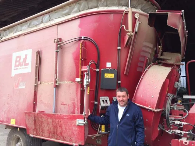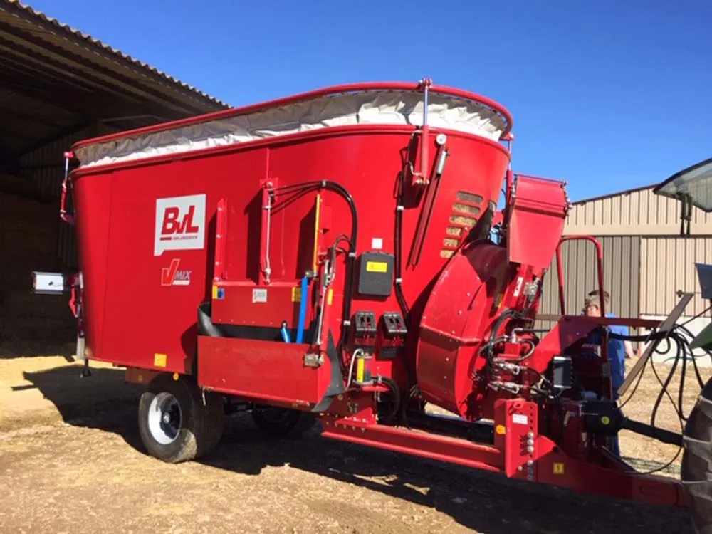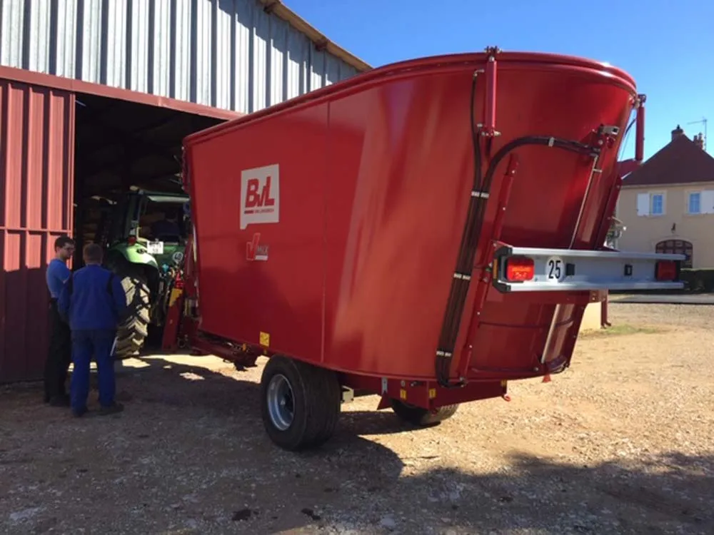 Thibaut Smessaert, technicien Bvl, s’est déplacé avec son revendeur, les établissements Malecot-Poirier pour prendre connaissance des besoins précis de l’éleveur : conception des bâtiments (hauteur, largeur, dimensions des auges…), nature des aliments (enrubannage, matière sèche foin…), capacité de paillage nécessaire… « Il fallait beaucoup de capacité avec un essieu simple pour la maniabilité, il fallait aussi pouvoir, dans certains bâtiments, décharger les aliments dans des auges et une hauteur ne dépassant pas 3m25. Une machine standard aurait été équipée d’un essieu tandem et aurait culminé à 3m35 de hauteur. Il a donc fallu se tourner vers le bureau d’étude pour s’adapter aux contraintes du client et réaliser sa machine tout en respectant son budget. » Après étude et validation par les membres du Gaec, la machine a été réalisée dans les mêmes délais qu’une machine standard.