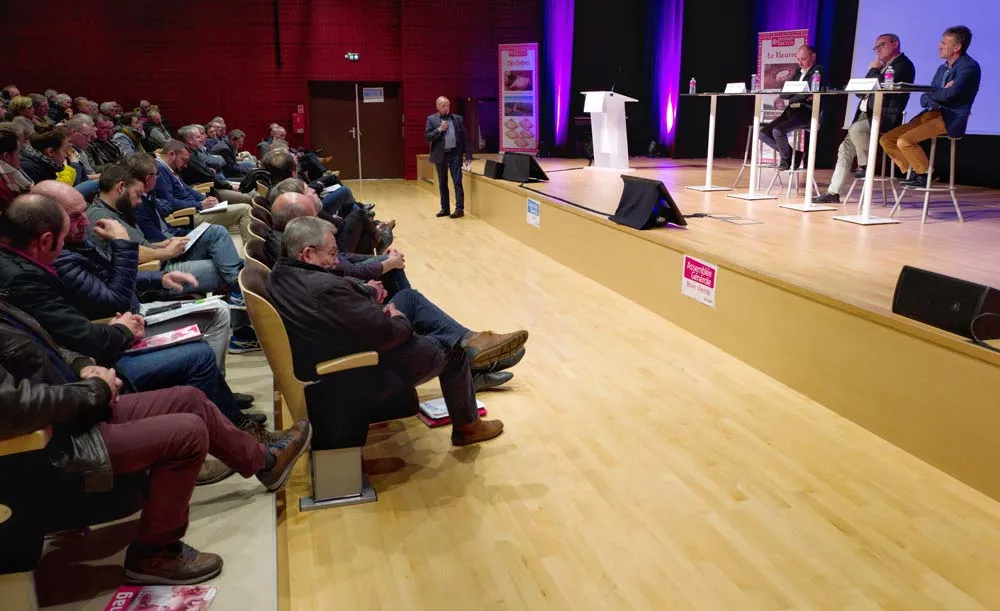 Après une rapide présentation des deux activités, de la production jusqu’à la transformation, dressée pour la partie lait par Yves Nicolas et par Olivier Frayer pour le bovin, c’est sous forme de table ronde que s’est poursuivie la conférence. Louis-François Leconte et Frédéric Conq ont répondu aux questions de Jean-Yves Deslandes, responsable économie des productions laitière et bovine.