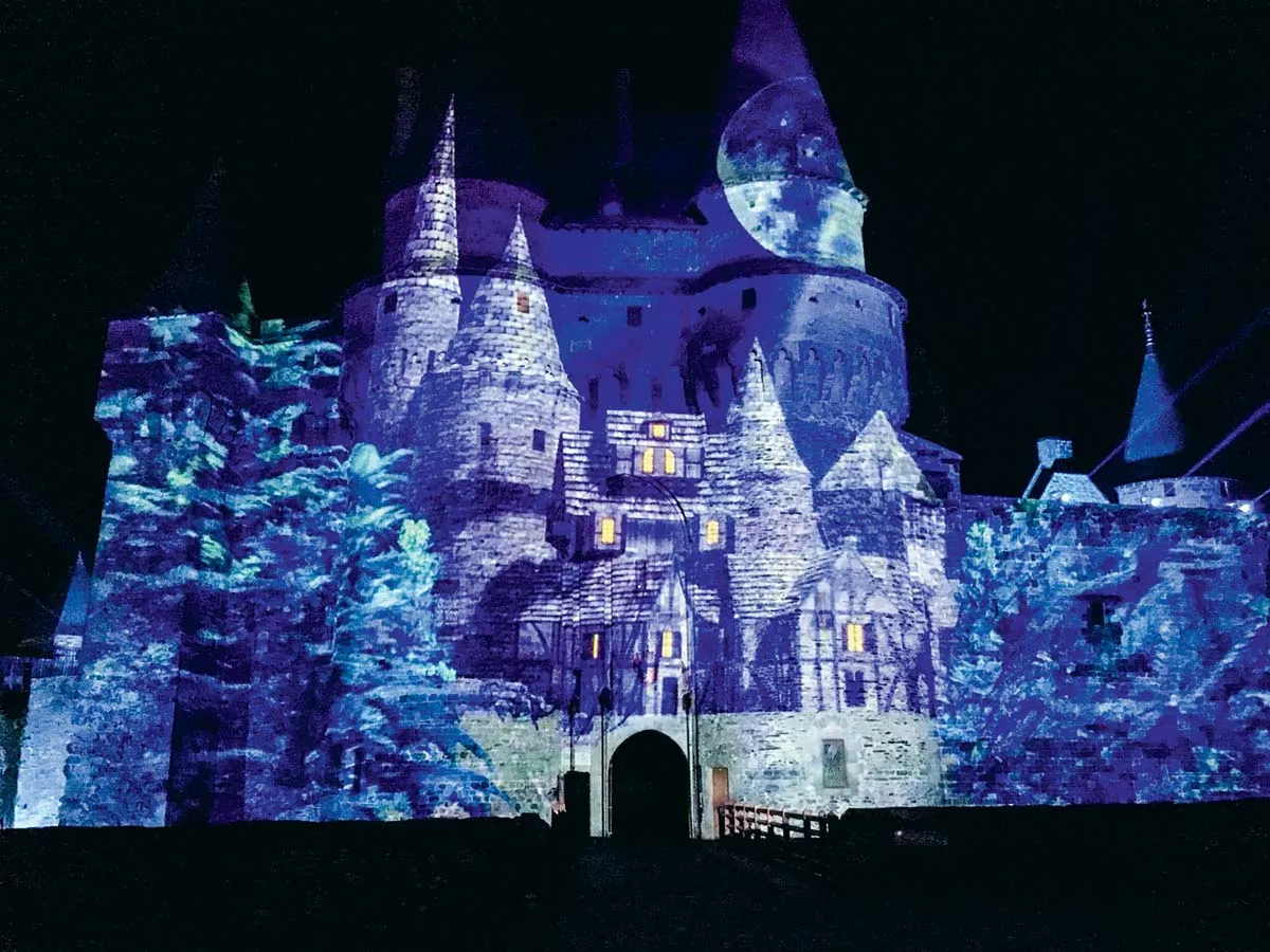 Aux abords du château faisant partie des fortifications des « Marches de Bretagne », l’histoire des barons successifs est racontée. Le 1er château de Vitré a été bâti autour de 1050 et a ensuite été adapté au fil du temps. Aujourd’hui, il abrite la mairie, et une partie se visite. À voir aussi lors du parcours, plusieurs édifices religieux remarquables dont l’église Notre-Dame et ses vitraux mis en valeur par la lumière. L’ancien quartier protestant se visite également. À partir du milieu du XVIe siècle, Vitré a été un bastion du protestantisme qui a cohabité avec le catholicisme.