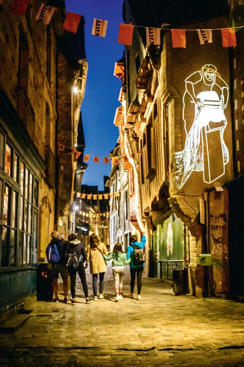 En mettant en valeur le riche patrimoine architectural, « Vitré Lumières » raconte l’histoire de cette cité ouverte sur le monde, marquée par son commerce de toiles de chanvre.