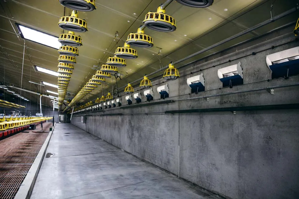 Matthieu Thomasset a construit un poulailler de 2 400 m2 tout en béton plutôt qu’en panneaux sandwich pour ses poules reproductrices en s’inspirant de ce qui est fait dans les pays du nord de l’Europe.