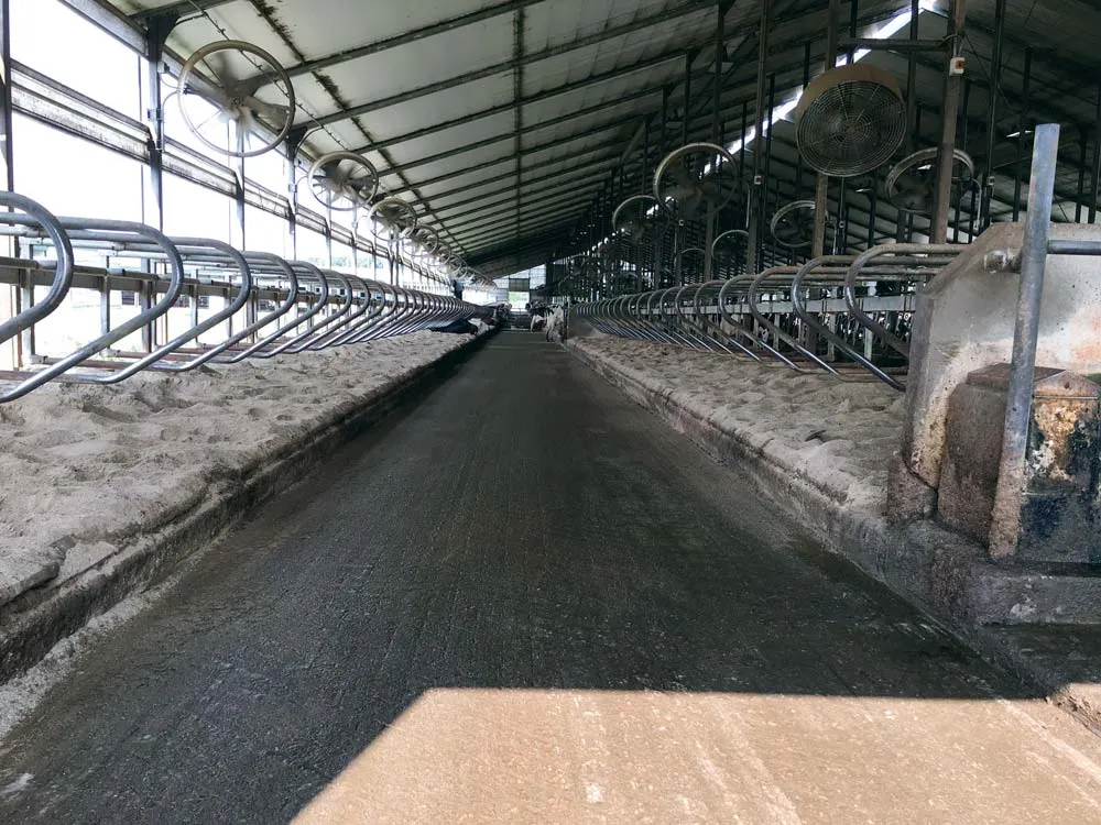 Les repas sont donnés trois fois par jour, l’ensilage est repoussé six à huit fois par jour avec un Bobcat. Les bovins bénéficient d’aménagements confortables. « Ils font énormément attention à cela : les bâtiments sont équipés de brumisateurs et de ventilateurs. Les vaches dorment dans des logettes sur sable : c’est le meilleur système. C’est un milieu sain qui apporte confort et résultats, notamment concernant les mammites et les problèmes cellulaires. » Toutefois, la gestion des effluents est lourde à mettre en place, nécessitant raclage, séparateur de phase, etc. Florian Huet est bien conscient que ces installations ne sont pas entièrement transposables aux réalités françaises. « Toutefois, le management du troupeau et l’organisation du travail pour allier efficacité et rentabilité restent très intéressants. »
