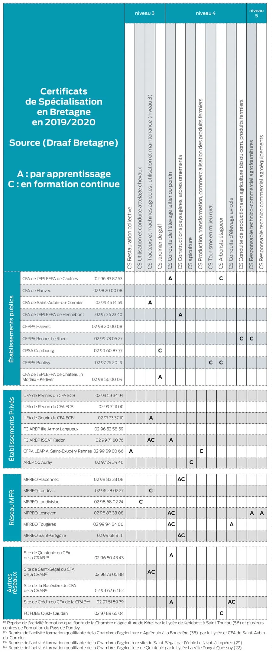 Avec la rénovation des BPREA et des Bac pro CGEA, certains Certificats de spécialisation (CS) , seront eux aussi revus en profondeur. 2020 verra la révision des CS Conduite d’élevage en bovin lait, en élevage porcin, caprin ou ovin. Un CS conduite de l’élevage Bovin viande sera aussi créé ; en culture, c’est le maraîchage qui se verra doté d’une nouvelle formation dédiée.