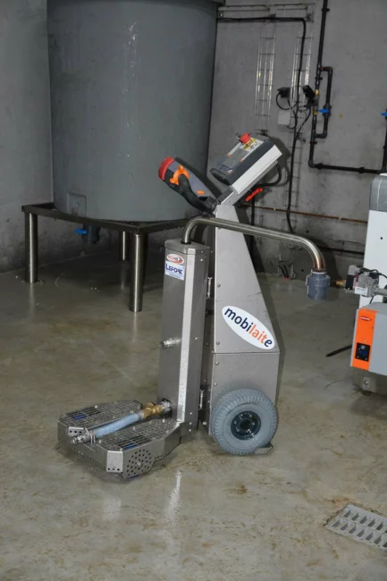 Sur le sol, un béton XA3 a été choisi, plus confortable pour les veaux du fait de son pH plus élevé. La productrice a aussi souhaité un bon écoulement des liquides (lisier et eaux de lavage) qui arrivent par gravité dans la citerne souple de 450 m3 (Cultivert). La vidange basse permet une vidange complète de la poche. Ce choix d’une citerne souple plutôt que d’une fosse présente plusieurs intérêts : pas de stockage des eaux de pluie, limitation des odeurs, pas de croûte donc moins de mouches. L’éleveuse a aussi acquis une réserve incendie de 120 m3 qui dispose d’un raccord pompier (autre citerne souple).
