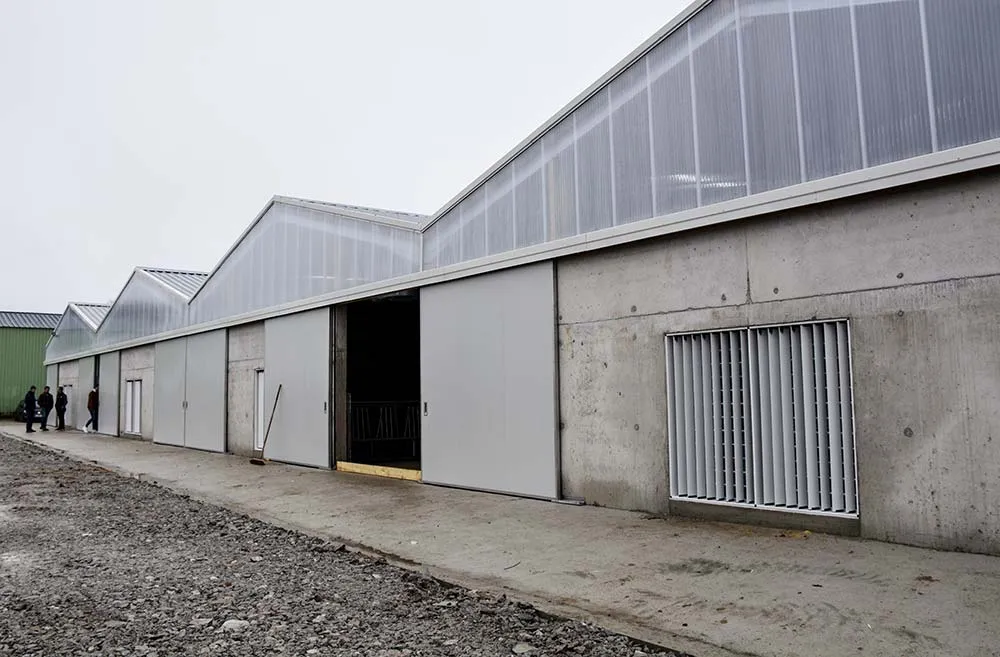 Importante en hiver comme en été, l’isolation est également assurée par des panneaux sandwich de 60 mm sur la charpente et de 50 mm sur le haut des murs. L’entrée d’air se fait sur les deux pignons. « La ventilation sera modulable avec des trappes équipées de volets. À l’extérieur, les volets verticaux cassent le courant d’air. À l’intérieur, les volets horizontaux ont deux plages : on peut ouvrir la moitié seulement. Ces derniers sont également translucides pour apporter de la lumière. » Manuelle au départ, la gestion de la ventilation pourra éventuellement être automatisée par la suite.