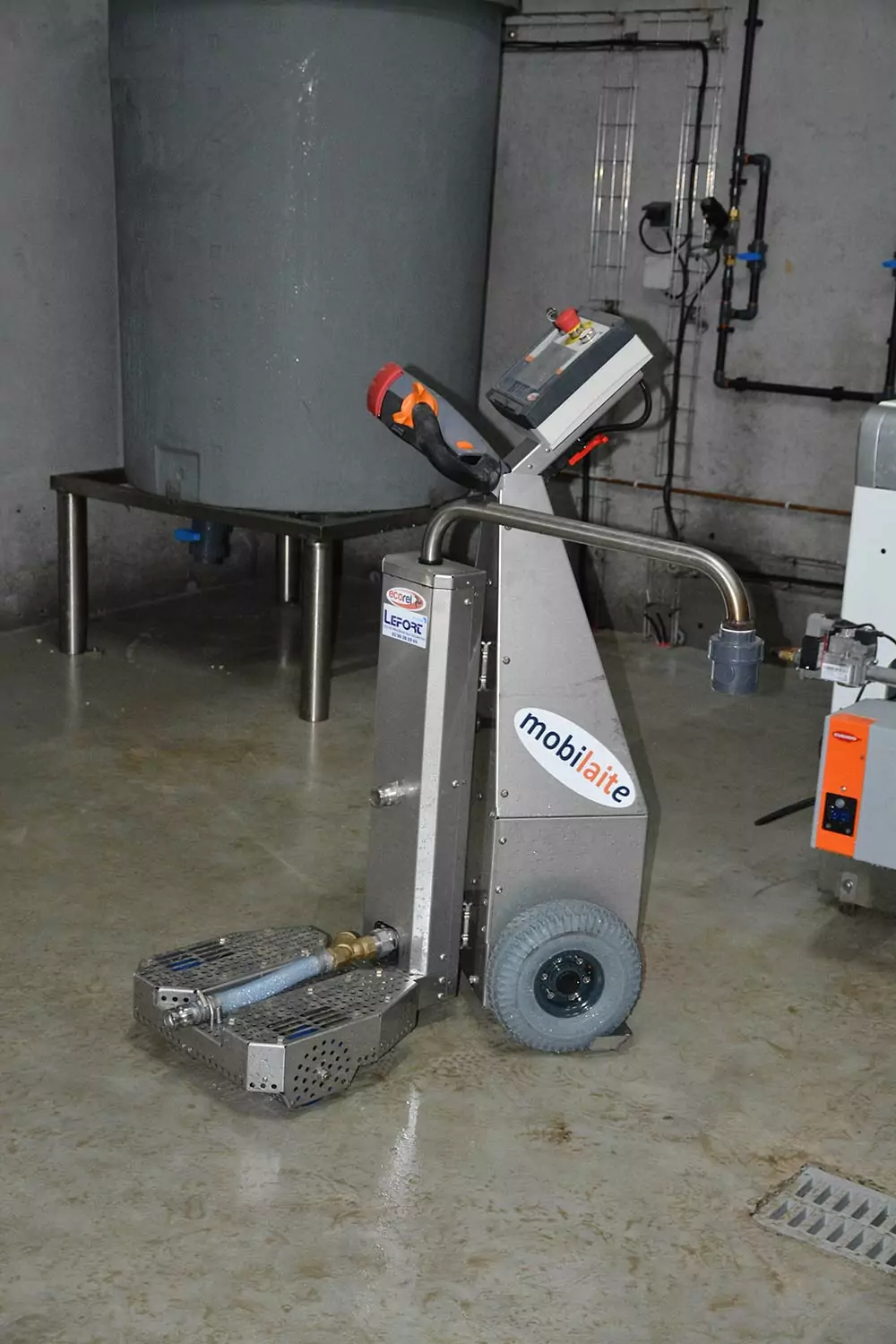 « J’ai d’abord souhaité avoir une ventilation efficace et de bonnes conditions de travail. C’est pourquoi j’ai opté pour un paillage automatique qui va permettre de gagner du temps », souligne Olivia Jégouzo. L’éleveuse aura juste à placer la botte de paille dans le démêleur situé à l’extérieur du bâtiment, équipé d’un piège à cailloux et d’une sécurité pour le feu (la paille doit être bien sèche ou sinon passée au rotocut pour avoir des brins de 35-40 cm). Elle passe ensuite dans un broyeur puis est dépoussiérée : les particules fines mesurant moins de 1,5 mm sont évacuées. Convoyée ensuite par la chaîne à pastilles, la paille tombe doucement via l’un des deux trous situés au-dessus de chaque case. Pour faciliter le travail, l’éleveuse a aussi acquis un chariot autoporté de distribution de lait et un distributeur motorisé d’aliment fibreux.