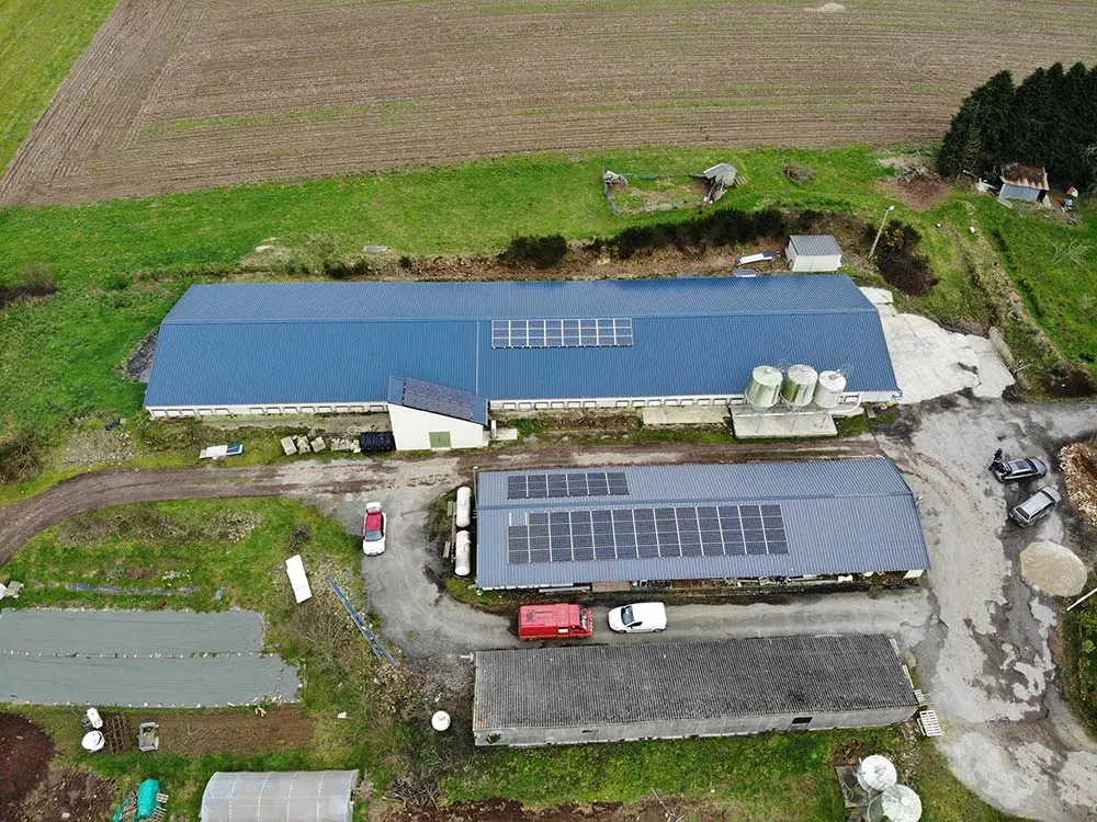 Une installation photovoltaïque de 30 kWc a été disposée sur les toitures pour assurer une grande partie des consommations électriques du poulailler. L’électricité produite alimente la Pac pour le chauffage du poulailler mais aussi le système de ventilation et l’éclairage. « 75 % des 30 000 kWh sont autoconsommés (22 500 kWh) soit 2 925 € d’économie en prenant un tarif de l’électricité à 0,13 €/kWh. Le surplus de production est revendu à 0,06 €/kWh soit 450 €/an. J’économise 3 375 €/an d’électricité pour un investissement de 35 000 € pour cette installation de 30 kW auquel il faut déduire la prime d’autoconsommation de l’État de 5 500 € sur 5 ans. L’investissement se rentabilise en moins de 9 ans tout cela en restant sur le prix de l’électricité actuel alors que l’on sait qu’il va augmenter », calcule Yves Guyon. L’éleveur n’a pas encore une année de recul pour chiffrer l’économie de gaz. En ayant mis en route la pompe à chaleur au mois de mai sa consommation de gaz sur 2019 a été de 3,6 tonnes pour chauffer 1 000 m2.
