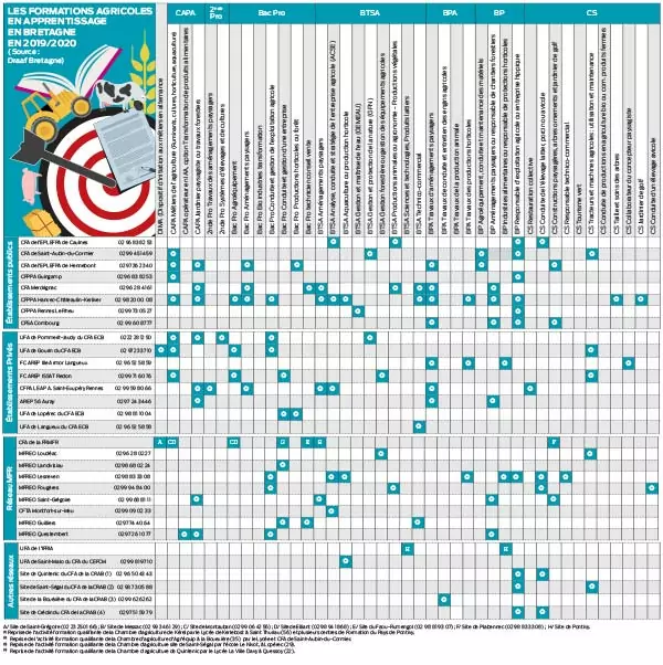 Tableau récapitulatif des formations agricoles en apprentissage en Bretagne 2019/2020 (Cliquez sur l’image pour télécharger le PDF)