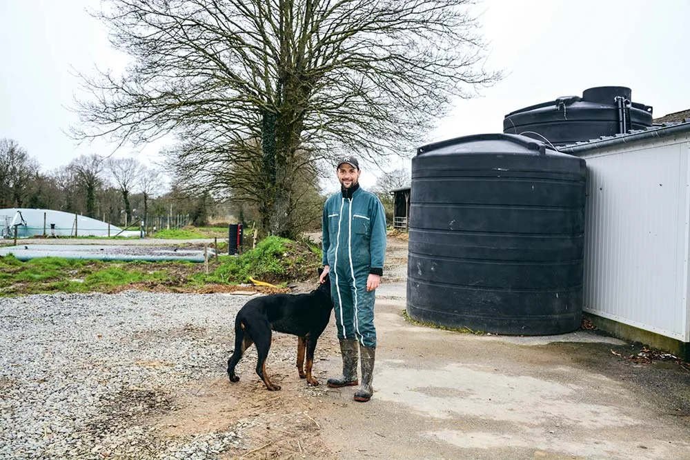 Récemment, Yves Simon a ajouté une filtration des particules limoneuses en amont du traitement pour purifier l’eau. En comptant tous les équipements (2 pompes immergées, 3 pompes de surface, cuves, bacs, poche de stockage des eaux de pluie, filtre), l’investissement total pour l’eau approche 40 000 € sur l’élevage. Pour encore plus d’autonomie en eau, un forage est envisagé par le producteur.