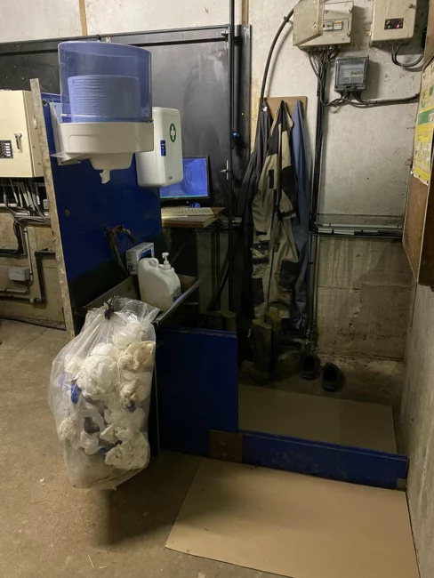 La priorité était de réaliser un sas sanitaire pour l’accueil des visiteurs et la livraison de matériel. J’ai contacté une entreprise locale pour la conception de ce sas. Il est situé à l’entrée de l’élevage. Un banc le sépare en deux pour bien délimiter zone propre et zone sale. J’ai également installé du grillage, un portail et des claustras pour fermer les accès à la zone professionnelle et j’y ai intégré la signalétique. J’ai conçu une passerelle entre deux bâtiments pour les transferts de mon post-sevrage à mon engraissement. J’ai aussi travaillé sur la biosécurité interne en faisant un code couleur dans les différents bâtiments pour le port des chaussures de sécurité et les panneaux par exemple. Je songe à faire un chemin le long de mon engraissement pour limiter la circulation de véhicules dans la cour de l’élevage. Grâce à ce chemin, les livraisons d’aliment pourront se faire en contournant la cour intérieure. Propos recueillis par Armand Tanné – Responsable territoire 29 Groupement EuredenUn éleveur dans le Finistère