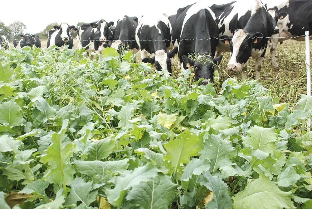 Pour revenir rapidement sur une pâture dans la rotation, par exemple pour les parcelles proches des bâtiments, le colza fourrager est une solution intéressante. Il sera implanté entre deux pâtures pérennes. La crucifère cassera ainsi le cycle. Le colza pourra par exemple être semé en mai pour le pâturer en juillet avant d’implanter la prairie à l’automne. Attention cependant à rationner le colza en pâturage au fil : maximum 1/3 de la ration et ne pas mettre des vaches le ventre vide. Le pâturage se fera au stade feuillu. Concernant la conduite du colza, il pourra être semé après un déchaumage, à 8-10 kg par hectare avec un combiné herse-semoir, à condition de semer en surface (moins de 2 cm de profondeur) et de rappuyer le semis (comme pour une pâture). Le choix de la variété est fonction de la période d’exploitation souhaitée. Les variétés sont pâturables entre 60 à 90 jours après le semis.