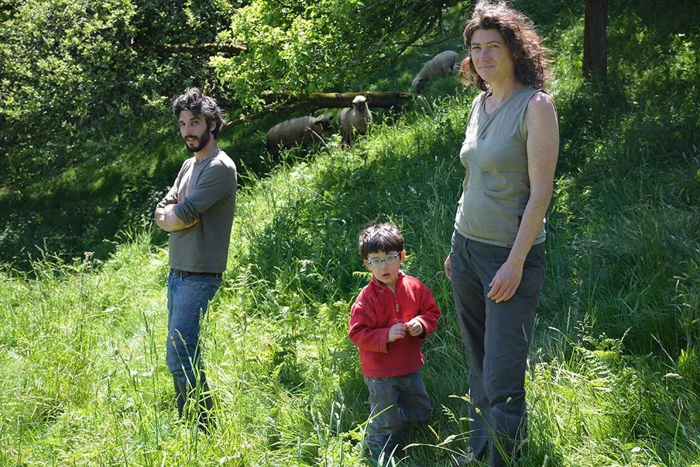 Marie-Ève et Pierre-Étienne Rault élèvent 140 brebis et produisent du pain sur une trentaine d’hectares, à Bubry (56). La peau des agneaux est tannée sur la ferme.