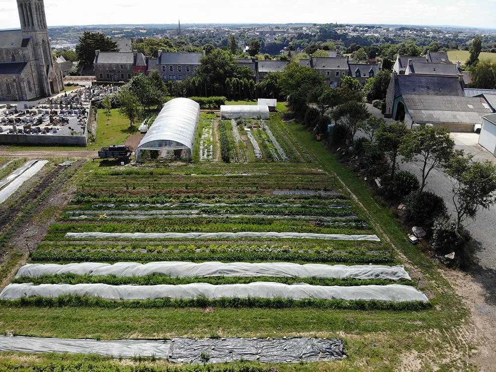 Bien que son travail le passionne, Florian avait envie de changement et d’entreprendre. « Je voulais développer un projet qui soit vertueux pour l’environnement. Depuis plus d’un an je m’intéresse au maraîchage diversifié en lisant, en regardant des vidéos sur Internet et en discutant avec des amis. » Il a averti son employeur l’été dernier qu’il désirait faire autre chose ; il passe alors à mi-temps en janvier 2020 pour développer son projet de maraîchage en conversion biologique. « Je me suis installé en février sur une parcelle de 1 ha située à côté des bâtiments de l’ancienne entreprise de travaux agricoles appartenant à mon père qui se trouvent en plein bourg de Plouguiel juste à côté d’un lotissement. Pour le moment je cultive mes légumes sur 4 000 m2. » La période de confinement instaurée juste après son installation a fait prendre de l’ampleur au projet. Il a acheté une serre de 250 m2 pour y cultiver 27 variétés différentes de tomates, 10 variétés de poivrons/piments, 7 variétés d’aubergines et de nombreux autres légumes qui sortent de l’ordinaire.