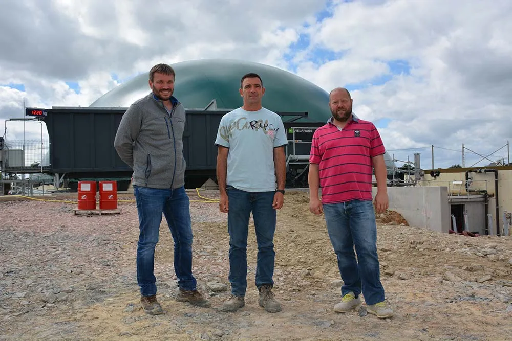 Régis Lemoine et Ludovic Simonet, qui sont respectivement producteurs de lait à Pleumeleuc (35), et de porcs sur Boisgervilly (35) se sont associés pour créer la SAS La Friche Margot dans le but de monter une unité de méthanisation. L’unité est implantée à côté de l’élevage porcin car la principale matière est le lisier. « En 2018, nous avions fait une étude chacun de notre côté pour créer une méthanisation avec cogénération sur notre élevage avec une puissance de 100 Kw chez moi et 150 Kw chez Ludovic », raconte Régis Lemoine. Mais très vite les deux agriculteurs envisagent de créer une unité commune pour monter en puissance. La possibilité d’injecter le biogaz à 2,5 km de l’exploitation de Ludovic fait basculer le projet de la cogénération à l’injection.