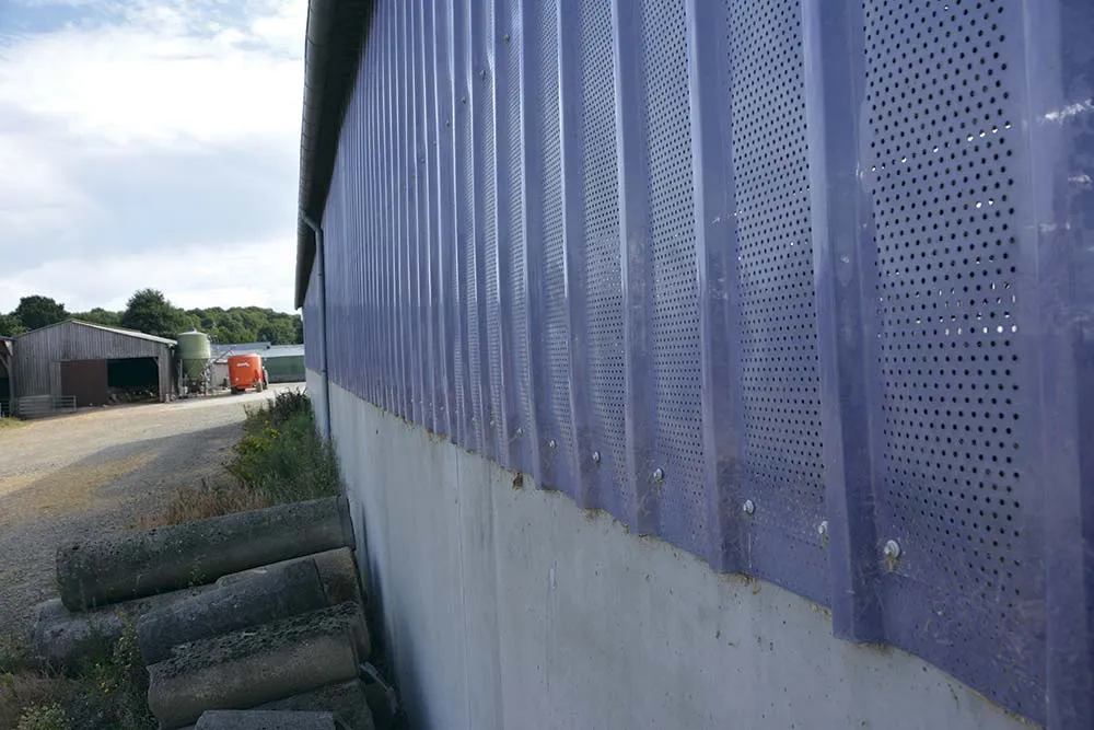 Une des craintes avec ce type d’ouvrage comprenant de grandes entrées de lumière est de mesurer une élévation de la température ambiante. « Ce n’est pas le cas, quand une bonne ventilation naturelle est là », rassure Jimmy Guérin. Ces tôles perforées filtrent en réalité les rayons lumineux entrant en apportant une lumière indirecte, et « ne brûlent pas la peau des animaux comme pourraient le faire des plaques en polycarbonate ».