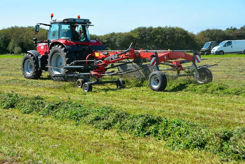 Afin de préserver les feuilles des légumineuses lors des chantiers d’andainage, l’Agronic ratisse le fourrage délicatement.