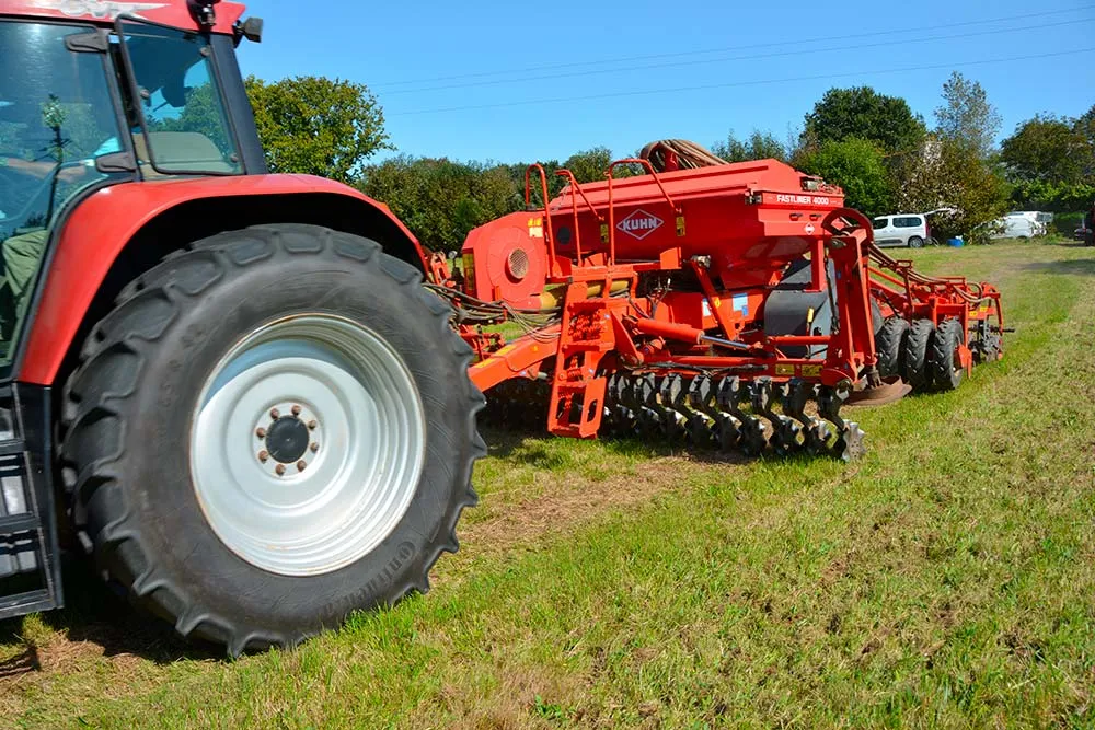Le sur-semis doit être réalisé à dose complète, comme pour une implantation normale de prairie. Pour le choix des espèces, Yves Le Berre, gérant d’une ETA, préfère « des trèfles et des ray-grass agressifs. Les dactyles et les fétuques sont déconseillés, car beaucoup plus longs à s’implanter ». Une parcelle bien rasée de 4 à 5 cm par une fauche ou un pâturage est aussi une des clés de réussite. « S’il reste des résidus secs en surface, les disques auront du mal à couper cette végétation ».