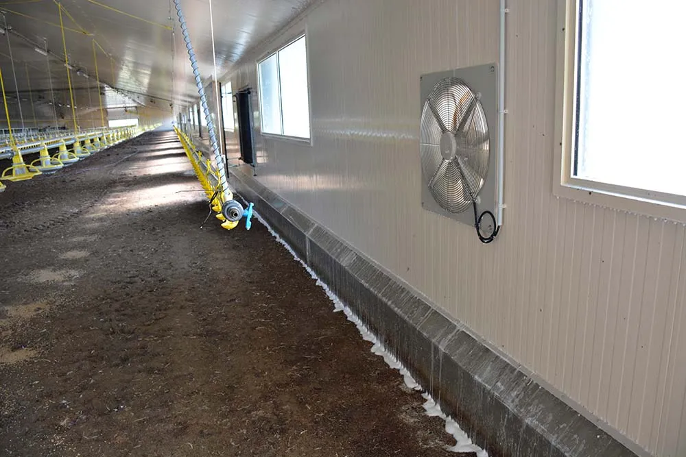 Le sol est désinfecté à la soude caustique liquide appliquée à l’aide d’un pulvérisateur spécifique sur remorque. « Il nous arrive de désinfecter à la chaux vive mais nous préférons la soude caustique qui donne de meilleurs résultats surtout sur terre battue où il reste toujours un peu de matière organique », conseille Christian Boué. Il est aussi possible de pulvériser un virucide ou un bactéricide si un problème sanitaire a été détecté sur le lot de volailles. L’ajout d’un insecticide permet de réduire la population de ténébrions. Une deuxième désinfection est réalisée par thermonébulisation 48 heures avant l’arrivée des poussins lorsque tout le matériel d’élevage est en place. L’éleveur ne fait pas de thermonébulisation avant le démarrage ; après la mise en place de sa litière il applique un fongicide/virucide diffusé par le système de brumisation du poulailler. « J’obtiens un brouillard très homogène qui pénètre partout. Depuis que je fonctionne de cette manière, j’ai beaucoup moins de problèmes sanitaires en début et en fin de lot. »