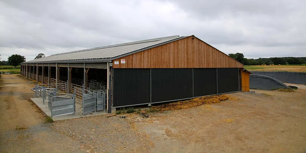 Le bâtiment neuf de l’EARL Le Clos des Maisons à Andouillé-Neuville (35) vise à développer l’atelier d’engraissement des taurillons et apporter davantage de sécurité à l’éleveur. « J’ai installé un système de contention car j’investissais dans un bâtiment neuf et je ne reviendrai pas en arrière », annonce Sébastien Canto qui élève 290 taurillons sur l’exploitation familiale. La contention PasdeLou semi-circulaire et semi-extérieure sera à l’avenir complètement abritée dans le bâtiment.