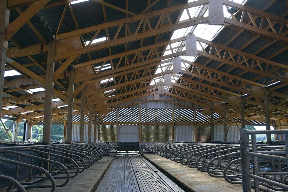 Le nombre limité de places sur l’aire paillée de l’ancienne étable, les travaux de rénovation indispensables (béton des sols, maçonnerie) et une augmentation de référence ont décidé les trois frères le Seyec à construire un nouveau bâtiment. « L’investissement répond à des impératifs techniques et économiques mais aussi au souhait de travailler dans de bonnes conditions pendant les quinze prochaines années de notre fin de carrière », indiquent les associés. « La construction permet de répondre aux enjeux sociétaux, notamment aux chartes des collecteurs concernant le bien-être animal ». Le bloc traite – roto de 23 places interne – installé il y a dix ans, est désormais amorti, ce qui laisse plus de marge aux associés pour investir. L’étable a été construite dans le prolongement des bâtiments existants, sans perte importante de foncier agricole. L’ensemble revient à 700 000 €, soit 3 500 € par vache.