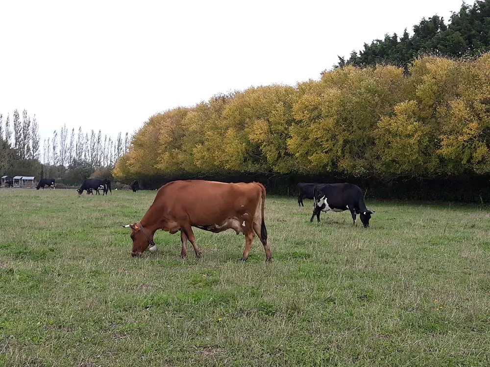 Affourrager pour ne pas accélérer et laisser à l’herbe le temps de repousser : le secret pour maximiser le pâturage, même avec une faible surface accessible. Actuellement, l’éleveur distribue 5 kg d’ensilage de maïs et 6 à 7 kg d’enrubannage en plus du pâturage. Grâce à cela, malgré ses 40 ares/VL, il reste encore 4 jours sur ses paddocks de 2 ha. Il n’a arrêté de tourner qu’en août quand c’était très sec, et il a même pu fermer le silo un mois. Il maintient un bon niveau de production avec 18 kg/VL en ce moment. Et de bons taux (TP : 33 ; TB : 42) notamment grâce aux déchets de pommes de terre qu’il donne depuis août.