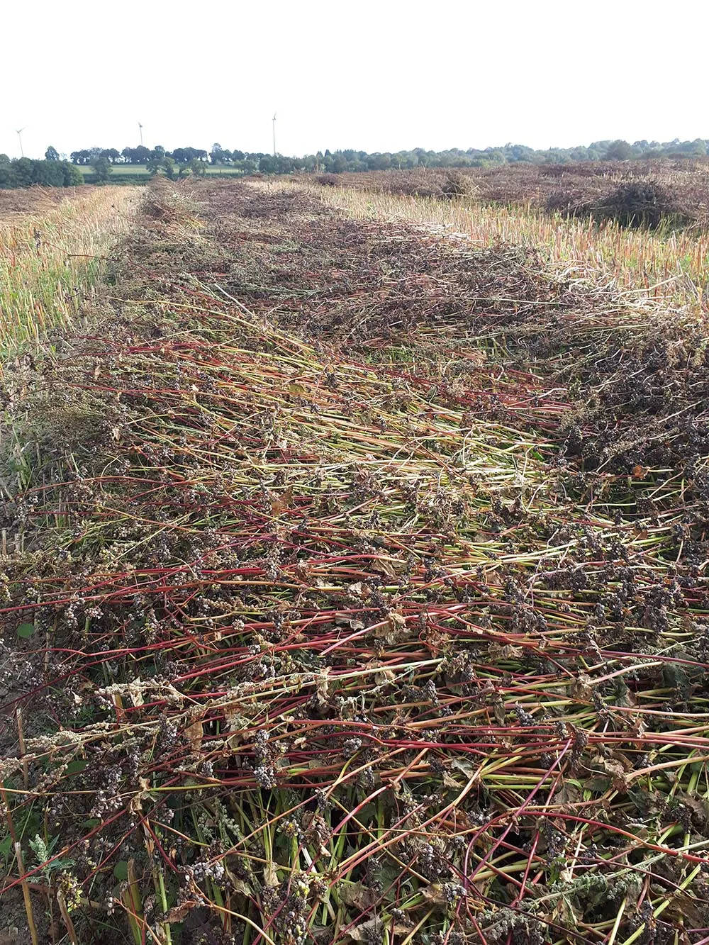 Pour faciliter la récolte, la technique du fauchage andainage prend peu à peu de l’ampleur. Elle consiste à venir faucher avec une barre de coupe le sarrasin, à laisser sécher les andains 3 à 5 jours, avant de les moissonner. La technique permet d’avancer de quelques jours la récolte et de réduire le taux d’humidité.