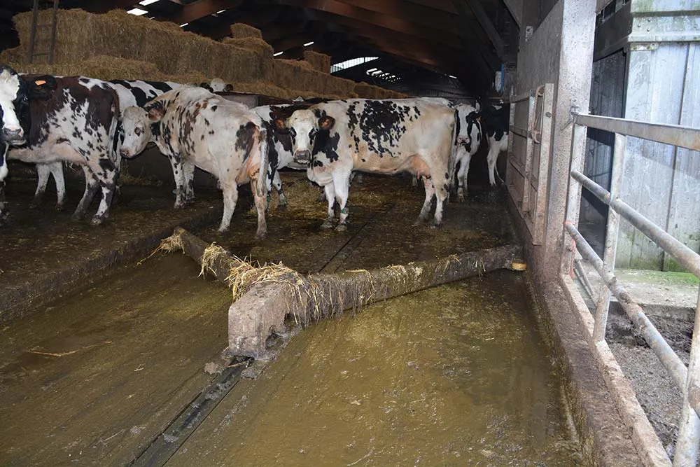 « Ces deux bâtiments sont en couloirs d’exercice raclés. Auparavant, nous avions des racleurs hydrauliques droits qui étaient usés. Nous les avons remplacés par ce système électrique, simple et robuste, avec des racleurs en forme de V pour mieux entraîner le fumier. »