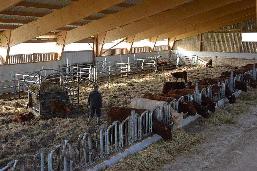 La ferme familiale glisse petit à petit de cultures de céréales et de maïs vers une part d’herbe toujours plus importante, pour atteindre 100 % de la ration dès 2017. « J’ai investi dans des semences de légumineuses, comme différents trèfles ou de la luzerne. Le coût de production est bas en race salers, pas besoin d’aliment de finition autre que celui produit sur la ferme ». Une dizaine de bêtes par an approvisionnent désormais ce marché local et direct, réparti sur 170 clients, situés dans un rayon de 30 minutes autour de la ferme.