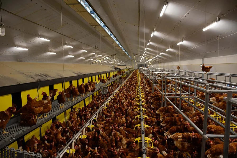 En 2020, Jérémy Méhat a décidé de s’installer aux côtés de sa compagne Élodie Lubert sur l’exploitation située à Béganne (56), qui compte un atelier allaitant de 60 mères limousines, en construisant un poulailler de pondeuses plein air. « Nous avons visité différents élevages de pondeuses pour arrêter notre choix de bâtiment et de matériel d’élevage. Nous ne voulions pas perdre trop de surface agricole pour les allaitantes, nous avons donc hésité entre 15 000 et 20 000 pondeuses pour le dimensionnement de cet atelier », témoigne le couple. Finalement, ce sont les économies d’échelle sur l’ensemble du projet qui ont facilité le choix qui s’est porté sur un poulailler de 20 000 pondeuses avec 8 ha de parcours. « Le coût de terrassement était le même que pour un 15 000 poules, cela ne changeait rien non plus pour : le sas sanitaire, les douches, le boîtier de régulation, l’emballeuse, les treuils, moteurs… Il n’y a que le bâtiment qui est un peu plus long et qui passe de 66 m à 88 m pour accueillir 20 000 pondeuses. »