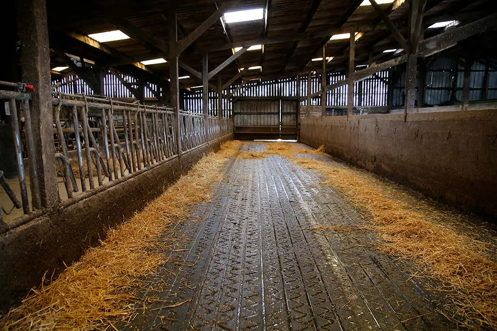 Face à des glissades et chutes répétées au sein de son troupeau, René Cozian, de l’EARL Cozian à Plouvien dans le Finistère, a installé un tapis Zig Zag. « Cette problématique était devenue insupportable. J’ai cherché tout l’hiver une solution et repéré le tapis Zig Zag dans le Catalogue Pro Cultivert », raconte l’agriculteur. Après avoir visité le site Internet du fabricant IDS et regardé des vidéos de présentation du produit, il contacte Pierre Leroy, technicien Cultivert à Ploudaniel. Ensemble, ils se rendent dans une exploitation où le tapis Zig Zag a été installé sur le béton lisse et glissant. « L’éleveur m’a indiqué que le produit a changé le comportement des animaux du jour au lendemain, donc je me suis lancé ! », poursuit-il. Dans un premier temps, il pense installer le tapis Zig Zag sur l’ensemble du bâtiment. Mais il décide finalement de tester le produit sur la table d’alimentation, lieu avec le plus de passage et le plus impacté par les chutes. En 4 heures, un poseur avec un engin de manutention et l’aide de 2 personnes de l’exploitation installe le tapis sur 40 m de long et 5 m de large. L’installation ne demande que peu de fixations et pas de collage. « C’est extrêmement simple comparé à l’installation d’un nouveau béton où il aurait fallu tout casser », souligne le technicien. Le bâtiment de l’EARL a été réalisé en auto-construction et le béton coulé n’était pas suffisamment épais pour être rainuré une nouvelle fois.