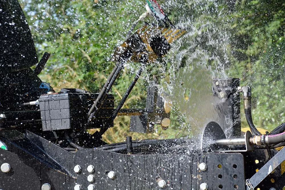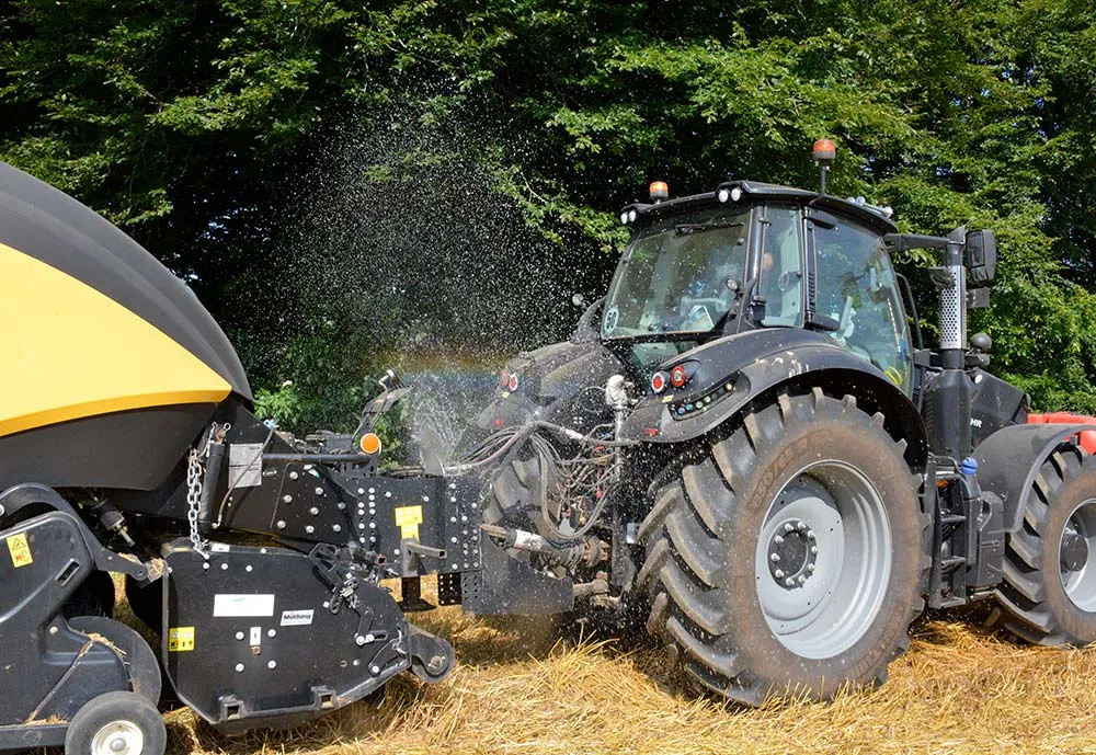 L’accessoire est vendu au prix de 4 990 euros HT. Une seule option est possible (450 € HT) : une buse à l’arrière du tracteur peut créer un rideau d’eau afin de sécuriser le chauffeur lorsqu’il veut dételer la presse lors d’un démarrage de feu. « C’est une sécurité indispensable pour nous avec un big baller muni d’un broyeur sous flèche. Une étincelle est vite produite avec un simple caillou sur le rotor à 1 000 tours par minute et de la tôle qui monte à plus de 50 °C. »