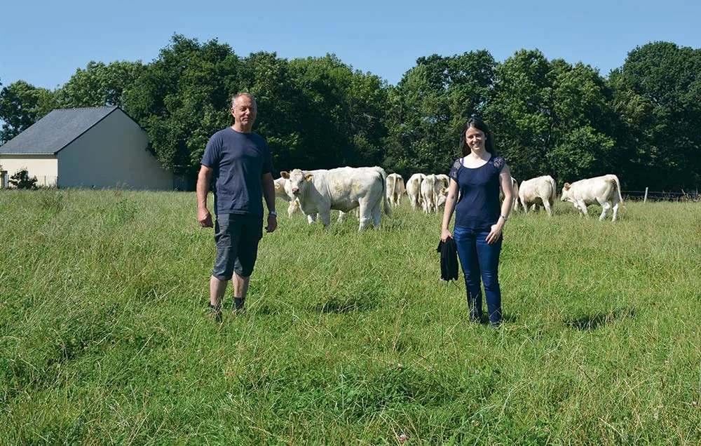 Denis Michelot et Manon Gicquel devant les jeunes femelles de l’élevage.