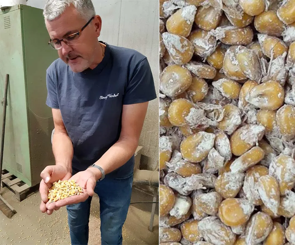 Même si l’inertage est propice à la bonne conservation en réduisant les risques de développement fongique et de propagation d’insectes, la qualité de la matière première est essentielle. Pour Laurent Ferchal, le gros du travail sur la qualité d’une céréale se fait principalement au champ et passe d’abord par la qualité du battage : « Il faut des machines adaptées afin d’éviter la présence de rafles ou de grains cassés. » Au préalable, il fait aussi le tour de toutes les parcelles pour vérifier la maturité. Pour le maïs, il préfère démarrer le remplissage avec des humidités n’excédant pas 35 % pour assurer un bon écoulement.