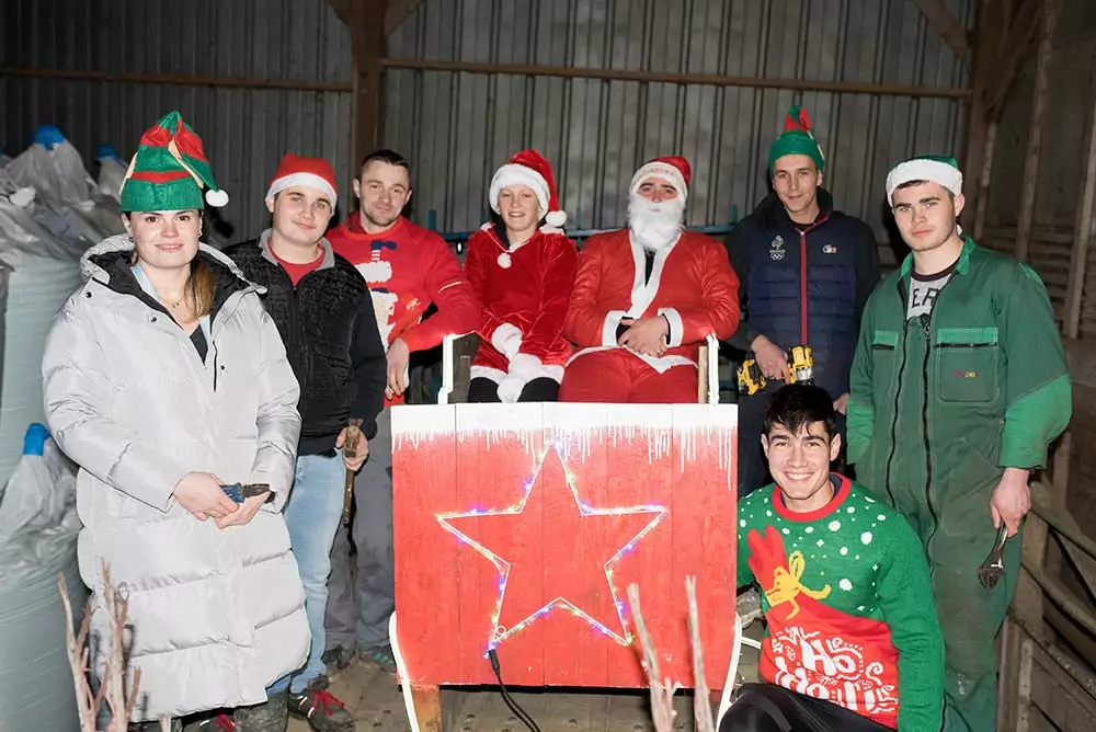En Côtes d’Armor, l’aventure des tracteurs illuminés a commencé en décembre 2020 à l’initiative des Jeunes Agriculteurs des cantons de Belle-Isle-en-Terre – Bégard (22). « Pour fédérer notre groupe local, nous cherchions un projet permettant de dynamiser notre territoire. Sur Internet, j’avais repéré une vidéo d’un défilé agricole de Noël en Irlande. L’idée était super, encore fallait-il la mettre en œuvre », se rappelle Yohan Hervé, éleveur à Louargat (22). Rapidement, une trentaine de personnes – agriculteurs, salariés, étudiants – se sont rassemblées. « Nous sommes avant tout une bande de copains. C’est l’esprit que nous voulons entretenir. Et cette parade de Noël nous donne un prétexte pour nous retrouver à une période où on se croise habituellement beaucoup moins », poursuit Adrien Henry qui accueille, avec ses deux frères Pierre-Marie et Gwenmaël, toute l’équipe sur la ferme familiale à Coatascorn pour concevoir les modules du défilé.