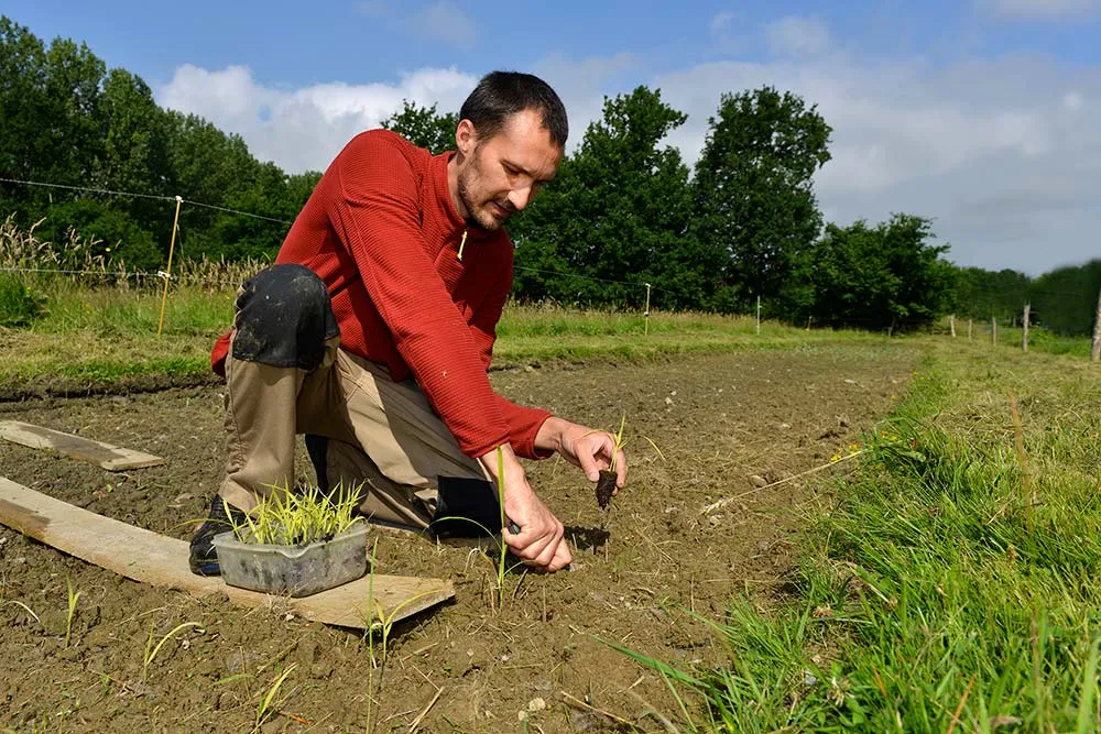 Début juillet, avec un mois de retard, les plants de riz sont plantés dans une terre si humide, qu’Alexandre Laverty doit utiliser des planches. Sans entamer leur détermination, la météo de plus en plus chaotique complique la tâche des riziculteurs pour adapter la céréale au climat breton.[/caption]