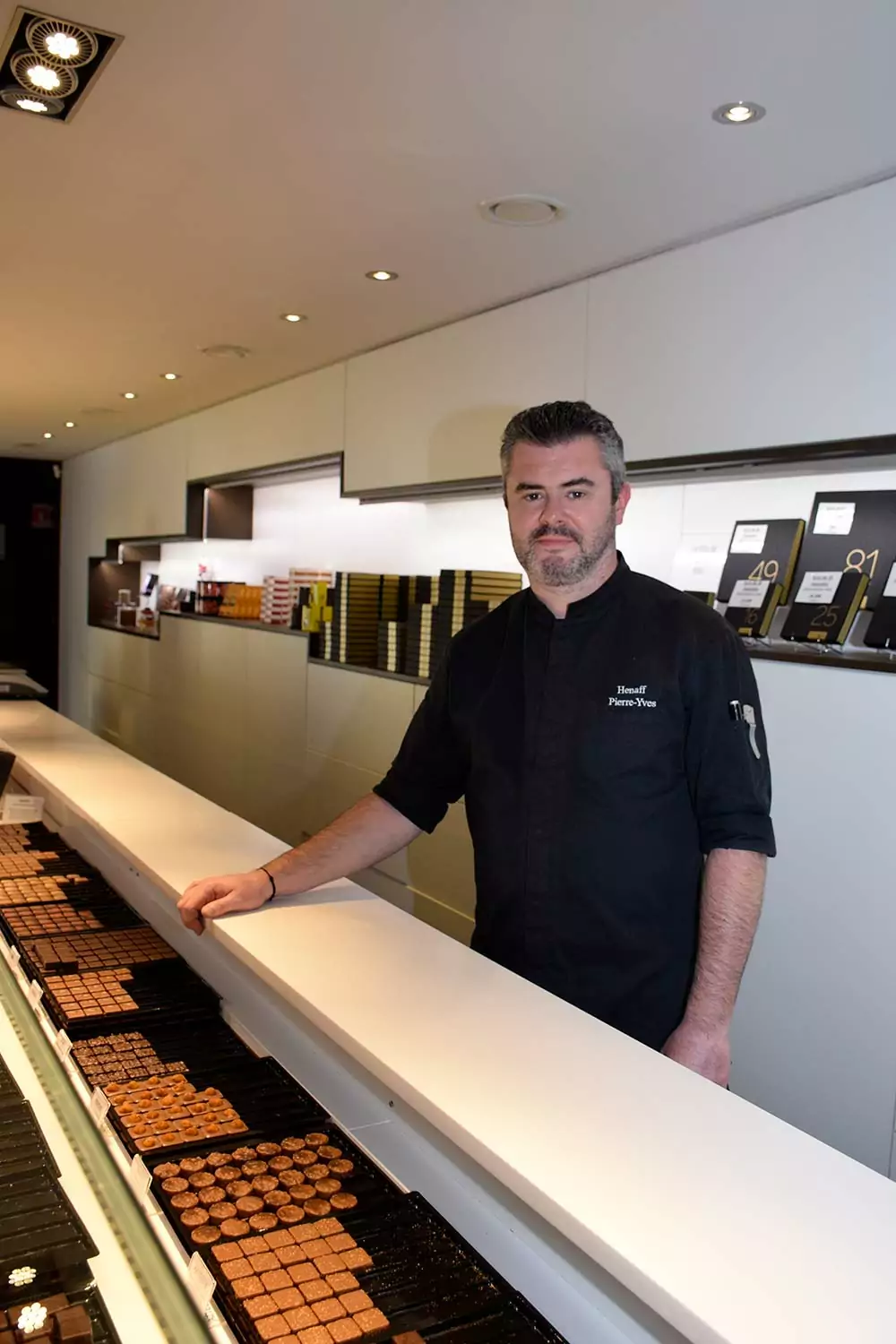 « Brest est la meilleure ville de France pour vendre du chocolat ! Là où il fait trop chaud, les clients préfèrent les glaces ! » Christian Hénaff sait de quoi il parle. Aujourd’hui retraité, ce Finistérien a ouvert sa première boutique à l’enseigne C. Chocolat dans la Cité du Ponant, en janvier 2006, avec son épouse et son fils Pierre-Yves. Aujourd’hui, l’entreprise familiale compte quatre magasins (deux à Brest, un à Quimper et un à Guipavas). Et, l’été prochain, le laboratoire de fabrication, implanté à l’arrière de l’une des boutiques brestoises, déménagera pour intégrer un nouvel espace, nettement plus vaste, en périphérie de la ville. Un projet financé avec le concours du Crédit Mutuel de Bretagne et qui comprendra un espace dédié aux visites. Mais l’heure n’est pas encore à faire les cartons. À l’approche de Noël, c’est l’effervescence dans les coulisses. « Nous fabriquons tout ce que nous vendons. Et les fêtes de fin d’année constituent un moment crucial pour nous. Près de 40 % du chiffre d’affaires est réalisé entre le 15 novembre et le 15 janvier. Lors de ce pic, notre effectif grimpe jusqu’à 45 personnes, alors que nous sommes une grosse vingtaine en temps normal ».