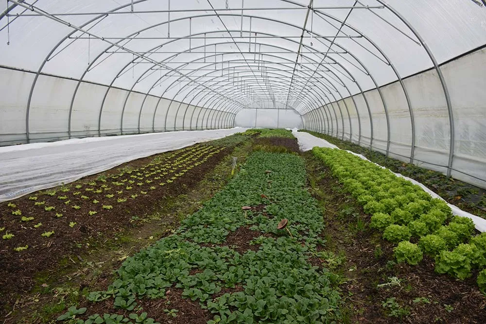 À la serre tunnel simple déjà présente sur le site, sont venus s’ajouter, dès le départ, un autre tunnel simple et deux tunnels doubles. Soit une surface totale sous serres de 2 900 m². Un équipement qui, à lui seul, représente plus du tiers de l’investissement global de 100 000 euros. « Mais c’était indispensable. Sans les serres, nous n’aurions pas la même gamme de légumes, ni la même productivité ».