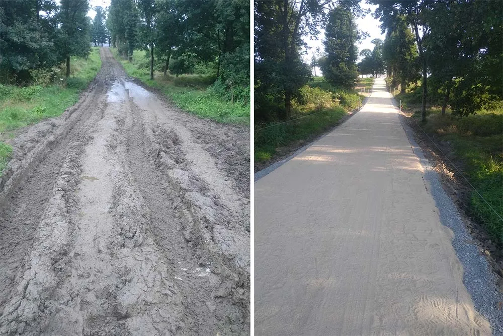 En 2021, les éleveurs décident donc d’investir dans la solution de stabilisation Ecovégétal pour un total de 21 000 €, dont 5 200 € subventionnés par le PCAE. Les travaux sont réalisés sur un chemin de 350 m