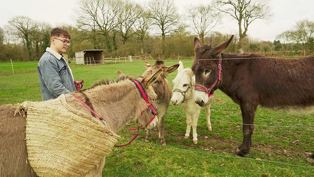 Depuis 2013, Sylvie et Jacky Labourde sont installés sur leur ferme à Saint-Fiacre (22). Située sur 6 ha de prairies, « Les Ânes de Min Guen » accueille enfants, familles ou adultes en quête d’évasion dans un cadre verdoyant et apaisant. « Ici, on prône la zen attitude », sourit Sylvie Labourde. Leurs nombreux animaux semblent du même avis. Ânes, chèvres, poules, moutons ou encore cochons d’Inde sont calmes, placides et en quête de caresses. L’asinerie propose des activités éducatives, pédagogiques, récréatives mais également des accompagnements thérapeutiques. En effet, la ferme abrite un centre d’accueil en zoothérapie pour des personnes atteintes d’un handicap ou de troubles du comportement.