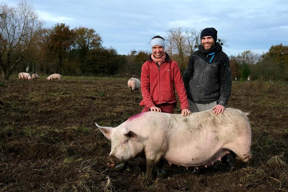 « On considère nos truies comme étant apprivoisées. Ça veut dire qu’elles nous connaissent et n’ont pas peur de nous. Quand on intervient lors d’une mise bas, d’une vaccination ou d’un soin pour blessure, l’animal est en confiance. C’est en passant du temps avec lui qu’on finit par connaître ses réactions, il prévient toujours avant d’être agressif. Une truie apprivoisée, c’est bon pour la sécurité ! ». Tout en surveillant des porcelets sortant du nid pour une nouvelle tétée, Frédéric et Louise racontent comment et pourquoi ils ont choisi de faire rimer élevage porcin avec bien-être animal. Mais qu’entendent-ils exactement par cette formule ? « Nos cochons bénéficient d’un certain confort à commencer par disposer de paille pour s’allonger. Ils peuvent séparer la zone de couchage avec celle des besoins, ont un accès permanent à l’eau, sortent régulièrement en journée, courent, fouissent, sont libres de leurs mouvements. En résumé, ils ont des conditions de vie conformes à leurs besoins ».